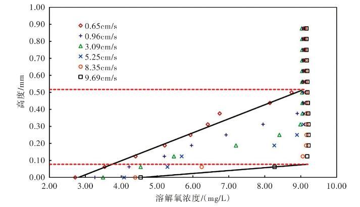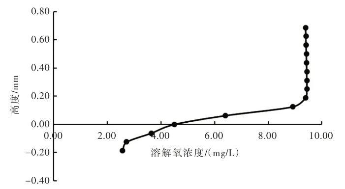 圖3 SWI溶解氧的垂向分布(水平流速8.44 cm/s)