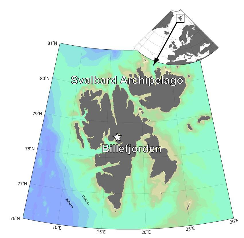 圖 1 研究區(qū)與 采樣站 BAB in Billefjorden 用星星表示
