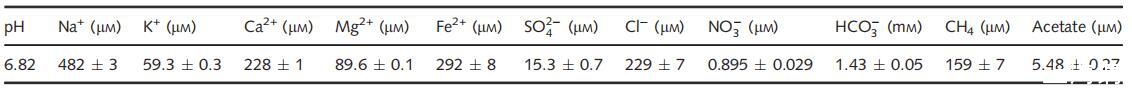 表 1 地下水源的主要元素化學(xué)(管道見圖 1A)。 標(biāo)準(zhǔn)偏差由樣品的重復(fù)測量(Fe2+和碳酸氫根)或標(biāo)準(zhǔn)的三次測量(Fe2+和碳酸氫根以外的元素)計(jì)算