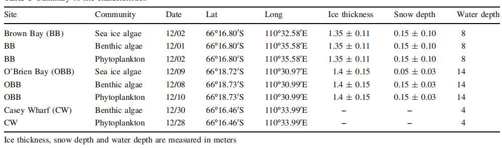 氣候變化可能會改變南極沿海海洋初級生產力不同組成部分的未來發展和重要性(Arrigo和Thomas,2004年)。隨著海冰融化和分解的提前,冰藻產量可能會減少。冰的早期消失可能會導致早春的浮游植物水華,但由于這些沿海水華在仲夏之前已經變得營養有限(McMinn et al.1995,2000),它們的早期發展也可能導致更早的死亡。目前,最大限度的底棲微藻發育可能發生在冰爆發后底部光線增加,以及水華減少導致水透明度增加之后。由于這些群落能夠從沉積物中獲得再礦化的營養物質,它們不太可能受到營養物質的限制,因此可能會更早地發育并持續更長時間。因此,在未來的南極沿海環境中,冰形成較晚、融化較早,底棲微藻初級產量可能會成為凈產量的一個更大組成部分。我們的研究初步嘗試量化海冰和底棲生物產生的程度,并估算這些成分和浮游植物的相對貢獻。這些數據將為評估未來的環境變化提供有用的快照。