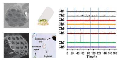 針對單細胞檢測,對于電極的尺寸和性能有更高要求,微電極可適用于單細胞物質檢測的諸多方面。相比貴金屬微電極,因其具有良好的生物相容性和較低的制作成本,碳纖維微電極更適用于單細胞檢測。此外,通過在貴金屬微電極表面修飾上納米粒子也可以實現低檢測限檢測過氧化氫、一氧化氮等小分子。
