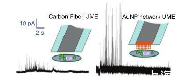 圖8碳纖維微電極與金納米顆粒網狀電極檢測單細胞胞外釋放的多巴胺[62]