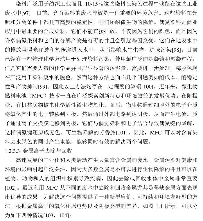 【摘要】:微生物燃料電池(microbial fuel cell,MFC)是一種利用微生物作為催化劑將有機物中的化學(xué)能轉(zhuǎn)化為電能的裝置。它將污水處理與電力生產(chǎn)有效的結(jié)合在一起,為能源和環(huán)境問題提供了新思路和新方法。MFC用可以自我復(fù)制再生的微生物替代了傳統(tǒng)化學(xué)燃料電池的貴金屬作為催化劑,同時微生物種類繁多、代謝途徑豐富且易調(diào)控,理論上能夠催化所有小分子有機物甚至部分無機物降解而產(chǎn)生能量,因而它是具有低成本、高效率、無污染等優(yōu)點,在污水處理、生態(tài)修復(fù)和便攜式能源等領(lǐng)域具有巨大的應(yīng)用前景。